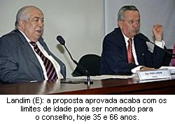 Paes Landim admitiu que o texto atual, que resultou da Emenda Constitucional 45, também relatada por ele, tem problemas. "É uma incongruência exigir a idade máxima de 66 anos para postulante à presidência do Conselho Nacional de Justiça, se não existe essa objeção para presidente do Supremo", afirmou.