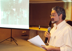 No último dia 17, no Auditório do TRT/CE, o jornalista Nilton Almeida, ex-secretário de Cultura do Ceará e professor da UNIFOR - Universidade de Fortaleza, ministrou palestra com o tema “O trabalho ferroviário na cartografia de Fortaleza” e que enfocou o surgimento das associações e a organização dessa categoria de trabalhadores, dentro da programação Letra Sete da agenda cultural do TRT/CE. Todo mês, sempre na terceira quinta-feira do mês, apresenta para magistrados, servidores e convidados atividades no campo da literatura.