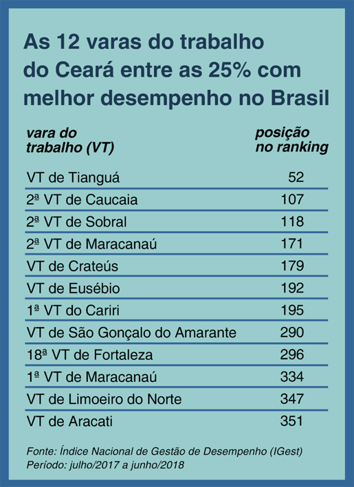 Os dados apontados são provenientes do Índice Nacional de Gestão de Desempenho e cruzam conjuntamente indicadores de acervo e celeridade processual, produtividade, taxa de congestionamento e força de trabalho das 1.568 varas trabalhistas do país, no período de julho de 2017 a junho de 2018.