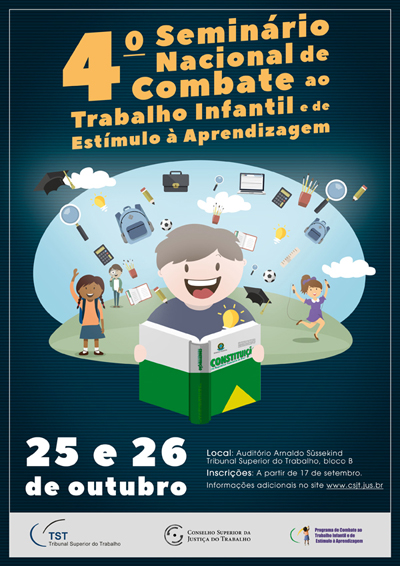 Para estimular discussões e propostas que fomentem o combate ao trabalho infantil no Brasil e promovam o cumprimento da Lei da Aprendizagem, o Tribunal Superior do Trabalho (TST) e o Conselho Superior da Justiça do Trabalho (CSJT) promovem o 4º Seminário Nacional de Combate ao Trabalho Infantil e de Estímulo à Aprendizagem. O evento será nos dias 25 e 26 de outubro e as inscrições estão abertas desde segunda-feira (17).