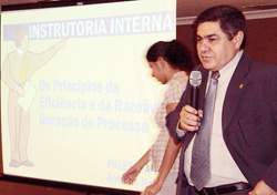 “Os Princípios da Eficiência e da Razoável Duração do Processo” foi o tema da palestra promovida pelo Tribunal Regional do Trabalho do Ceará – 7ª Região e que abriu o programa de instrutoria interna do Tribunal. Proferida pelo analista judiciário Antônio Ribeiro Nobre, do TRT/CE, a palestra abordou aspectos relativos à resolução e conclusão dos processos no menor espaço de tempo possível para dar maior celeridade aos trabalhos no âmbito da Justiça.