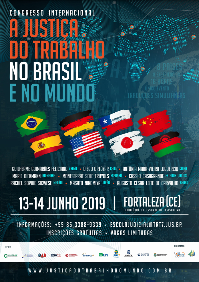 Modelos de Justiça do Trabalho no mundo é tema de Congresso Internacional em Fortaleza, nos dias 13 e 14 de junho