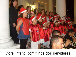 Um Auto de Natal inédito em Fortaleza. O Tribunal Regional do Trabalho do Ceará – 7ª Região realizou, nesta quinta-feira, dia 11 de dezembro, nos jardins de sua sede, Avenida Santos Dumont, 3384, uma celebração natalina que reuniu no mesmo palco, a Orquestra Filarmônica do Ceará, com seus 38 músicos, e o Coral Sétima Voz, formado por servidores do Tribunal. Na apresentação, a participação especial de um coral infantil, composto por 25 crianças, filhos de servidores do TRT/CE.