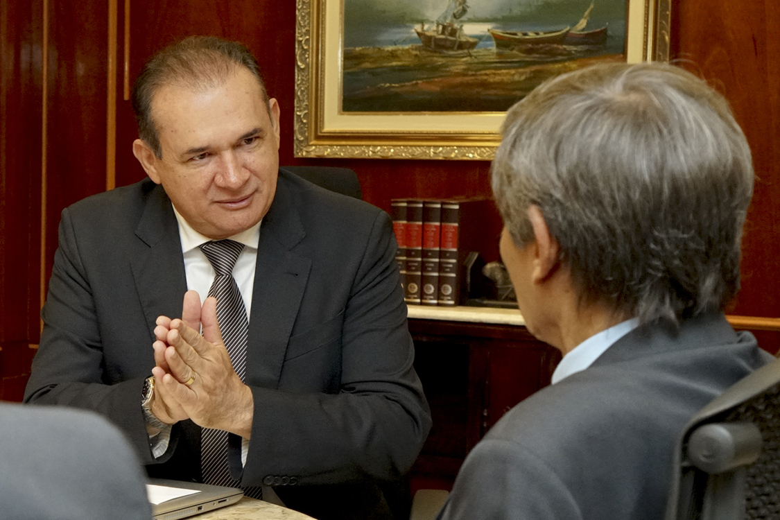 O presidente do Tribunal Regional do Trabalho do Ceará (TRT/CE), desembargador Plauto Porto, e o presidente do Tribunal de Justiça do Ceará (TJCE), desembargador Washington Luis Bezerra de Araújo, reuniram-se nesta quarta-feira (8/1) para apresentar boas práticas em segurança institucional. O encontro ocorreu na sede do TJCE, no Cambeba, Fortaleza.