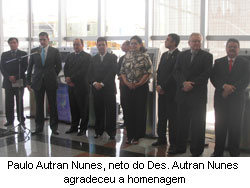 Na ocasião, falou, em nome da família do desembargador Autran Nunes, o seu neto, o advogado Paulo Germano Autran Nunes, que agradeceu ao diretor do Fórum, juiz Judicael Sudário de Pinho, a lembrança em expor, na entrada principal do Fórum, o retrato do seu avô, “pessoa que deu boa parte de sua curta vida à Justiça do Trabalho”, afirmou.