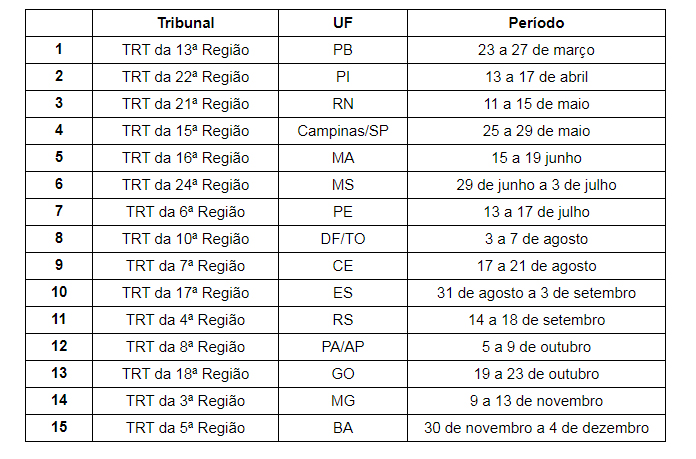 No total, 15 Tribunais Regionais do Trabalho passarão por correição neste ano.