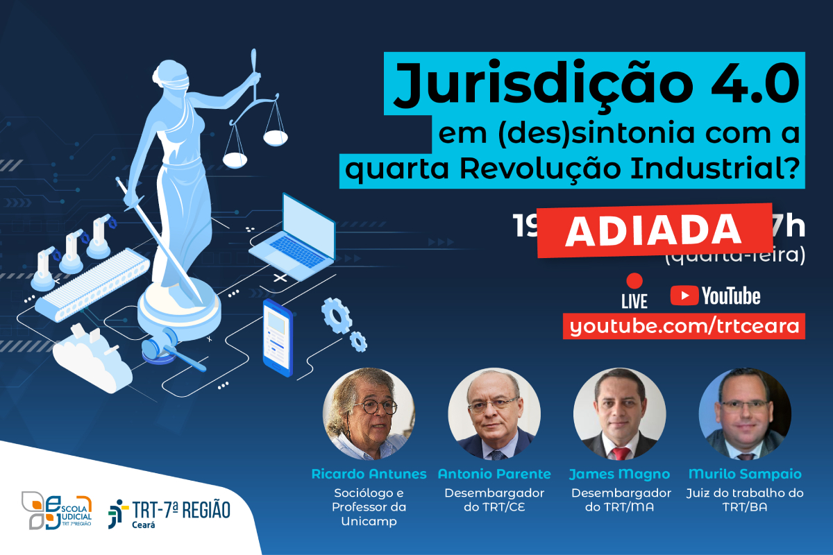 A live “Jurisdição 4.0 em (des)sintonia com a quarta Revolução Industrial?”, que seria transmitida nesta quarta-feira (19/8), foi adiada, por motivos de saúde de um dos convidados. A nova data do evento será divulgada em breve.