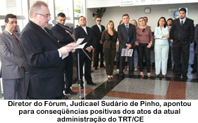 O juiz Judicael Sudário de Pinho também afirmou que “impõe-se relembrar, ainda alguns eventos relevantes que se produziram ao longo do primeiro ano da atual administração, citando, entre elas, a Reestruturação Administrativa; Concretização do Leilão Público Unificado; Implantação do Juízo Auxiliar de Execuções; Inauguração do Posto Avançado da Vara do Trabalho de Limoeiro do Norte, no município de Aracati; Criação da Justiça do Trabalho Itinerante; Instituição do Sistema de Mutirões; Treinamento de Servidores; Acordo de Cooperação com o Instituto de Previdência do Município de Caucaia; Aprovação de Resolução Autorizativa de Concursos Públicos; Programa de TV “De Fato e de Direito” e Implantação da Gestão Estratégica como instrumento de ação Administrativa Planejada.