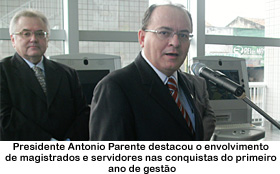 O desembargador José Antonio Parente aproveitou o momento para externar, mais uma vez, a vitória da Justiça do Trabalho do Ceará, pela aprovação no Senado da República do Projeto de Lei Complementar Nº 91-2009 que altera a composição do TRT/CE, criando seis novos cargos de desembargadores, 154 cargos de servidores, 103 cargos em comissão e funções comissionadas para a Justiça do Trabalho do Ceará.