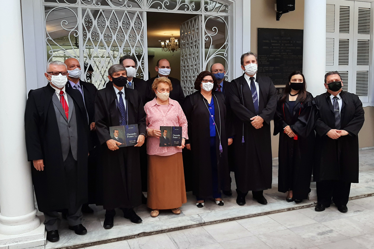 Na manhã da sexta-feira (6/11), o Tribunal Regional do Trabalho do Ceará (TRT/CE) promoveu solenidade em homenagem ao centenário do desembargador Osmundo Pontes, falecido em 1995. A cerimônia ocorreu na Sala de Sessões do Pleno, na sede do órgão em Fortaleza, e também contou com a abertura da exposição “Osmundo Pontes: 100 anos entre a toga e a crônica”, sobre a vida do magistrado. O evento foi restrito para convidados e familiares, devido às recomendações de distanciamento social em razão da pandemia do coronavírus.