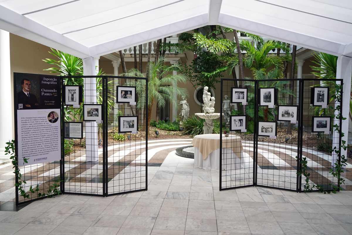 A exposição “Osmundo Pontes: 100 anos entre a Toga e a Crônica” é uma iniciativa da Seção de Memória em parceria com a Divisão de Comunicação Social do TRT/CE, e busca contar a história do magistrado por meio de 22 fotografias da sua vida profissional no Direito do Trabalho. Por enquanto, a mostra fotográfica é restrita a magistrados, servidores, estagiários, terceirizados e convidados, devido às recomendações de distanciamento social para combater o coronavírus. Quando o TRT/CE normalizar seu funcionamento, será aberta ao público em geral.