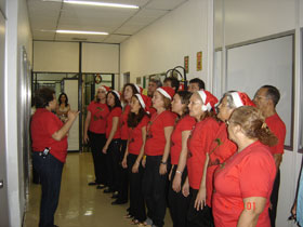 Com o objetivo de possibilitar a confraternização entre os servidores, o Coral percorreu andar por andar o Prédio Anexo II, entoando canções natalinas, recheadas de significados e despertando bonitas emoções.