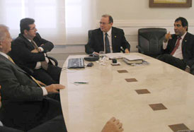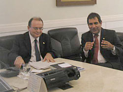 Acompanhado do presidente da seção cearense da OAB, Hélio Leitão, o presidente Cezar Brito veio pedir o apoio do presidente do TRT/CE para a marcha sobre Brasília que a OAB vai promover, no próximo dia 06 de maio, em protesto contra a possível aprovação, na Câmara dos Deputados, da PEC 12/2006 que trata da questão dos precatórios.