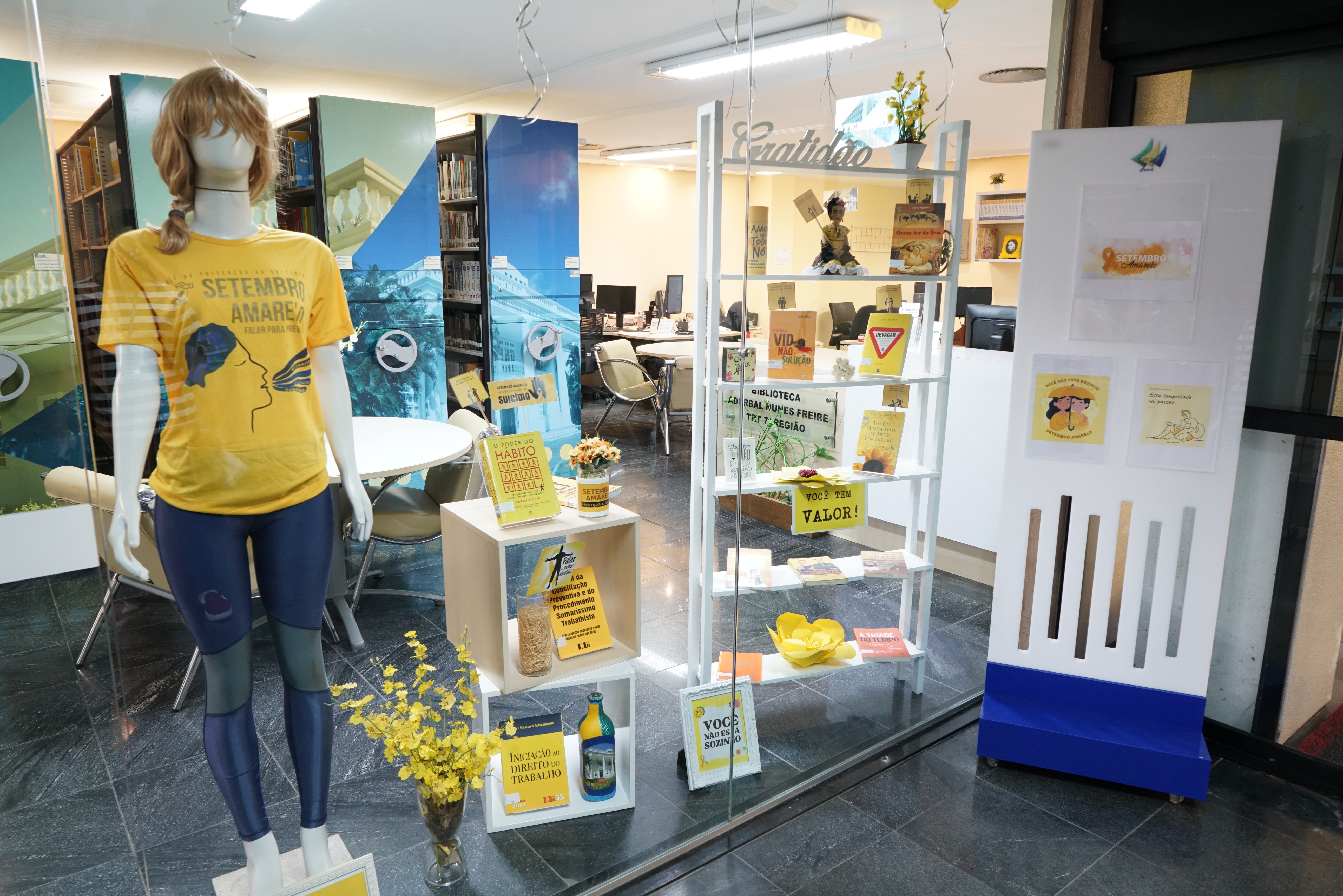 A Seção de Biblioteca do TRT/CE, no próximo dia 23/9, fará a 23ª Edição Virtual do Odisseias Literárias, versando sobre a campanha “Setembro Amarelo”. O evento, que abordará o tema “Encontrando a vida na poesia”, contará com a participação de Mariana de Brito Lima, psicóloga da Seção Psicossocial do Tribunal. Ademais, a Biblioteca organizou, em suas dependências, uma “Vitrine Amarela” com livros e balões que trazem a cor da campanha.