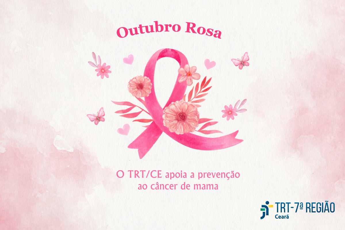 Em alusão à comemoração do Outubro Rosa, a fachada do Tribunal Regional do Trabalho da 7ª Região, durante todo o mês de outubro, está iluminada em tonalidade rosa e a Seção de Biblioteca exibe sua vitrine literária com obras e adornos relacionados à campanha de prevenção ao câncer de mama.