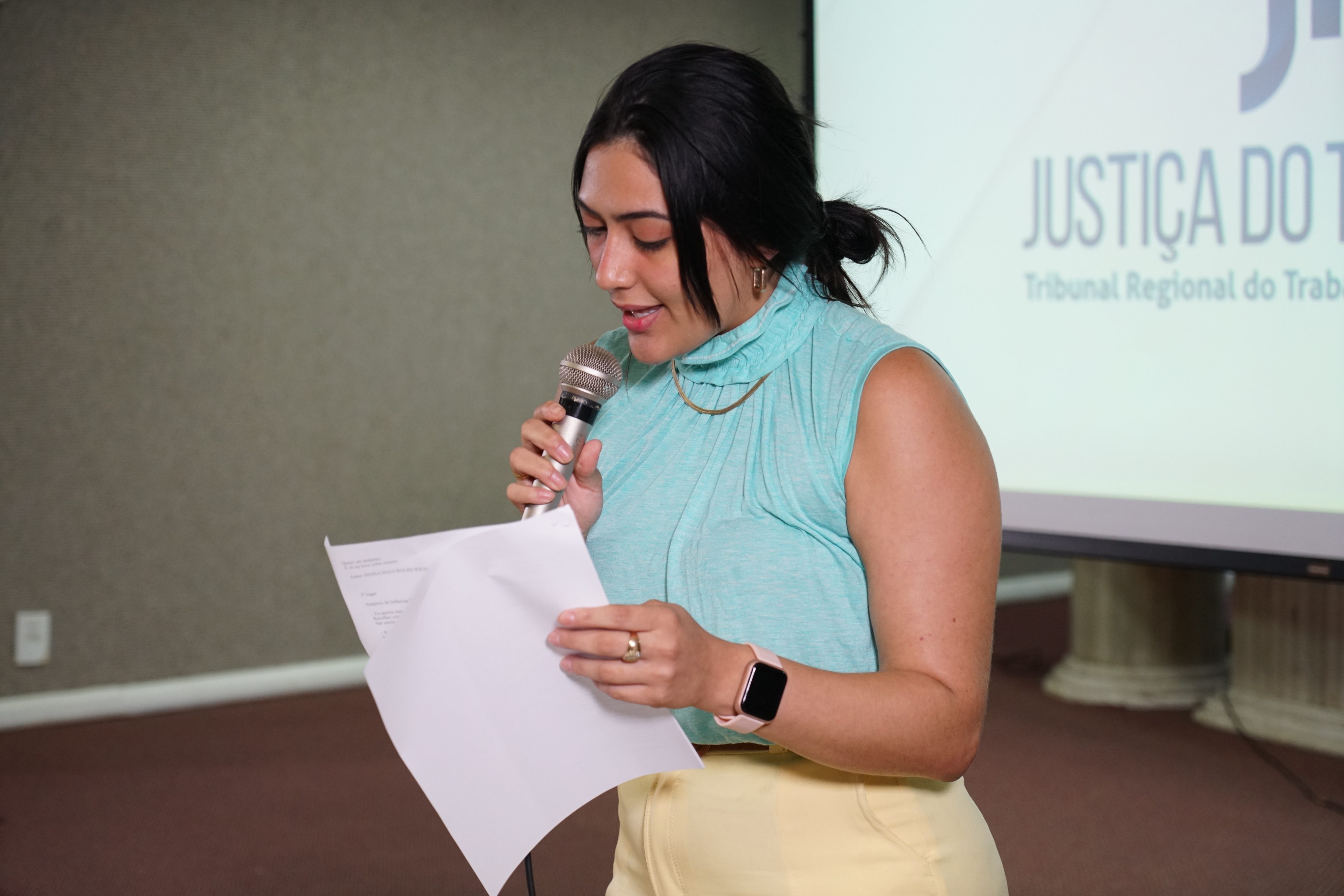 A estagiária Sara Monteiro Matias, da 2ª Vara do Trabalho de Caucaia, foi a grande vencedora do II Prêmio de Combate ao Trabalho Infantil e Estímulo à Aprendizagem. Sua obra será utilizada em campanhas de divulgação pelos canais oficiais do TRT-7. Além disso, a estudante recebeu R$ 1 mil, certificado e kits do Programa de Combate ao Trabalho Infantil e Estímulo à Aprendizagem (PCTI). A cerimônia de premiação ocorreu na sexta-feira (7/10), no auditório do TRT-7, ao término do II Seminário Cearense Trabalho Decente.