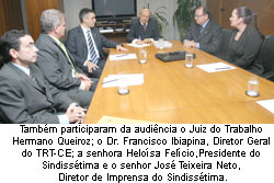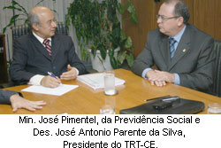 “Não é ainda a ampliação que achamos a mais adequada, mas consideramos que vencemos um desafio histórico de aumentar nossa estrutura e poder prestar uma melhor assistência à nossa população no âmbito da jurisdição do Tribunal Regional do Trabalho do Ceará”, afirmou o presidente do TRT/CE, desembargador José Antonio Parente da Silva, que, em audiência com o ministro da Previdência, José Pimentel, conseguiu firmar o compromisso de que se o projeto chegar ao Congresso Nacional até o dia 5 de dezembro terá a garantia de recursos para a ampliação assegurados no Orçamento Geral da União em 2009.