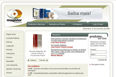O produto on line Magisternet é uma sistema de pesquisa na Internet que inclui legislação, jurisprudência e doutrina. Seu conteúdo é atualizado, consolidado e anotado diariamente, com uma tela de navegação bem simples que permite ao usuário guardar em arquivo ou imprimir os itens de seu interesse. A pesquisa no Magisternet permite o acesso ao um completo e atualizado acervo jurisprudencial, com mais de seis milhões de julgados selecionados dos principais tribunais do País e também disponibiliza mais de três milhões de acórdãos na íntegra, disponibilizados em formato texto.