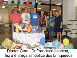 Os brinquedos, recolhidos em forma de doação, foram entregues aos representantes da Campanha Doe Brinquedos, alusiva ao Dia da Criança.
