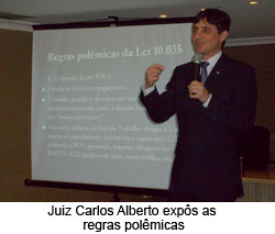 O palestrante, que também é Mestre em Ciências Jurídicas, falou sobre algumas leis e regras polêmicas relacionadas às contribuições previdenciárias. Entre elas, estão as questões inseridas pela Lei Nº 10.035 e o Projeto de Lei 345/08, do Poder Executivo, que proíbe, para fins previdenciários, o reconhecimento do tempo de serviço referente às relações de emprego confirmadas na Justiça do Trabalho com base em prova testemunhal.
