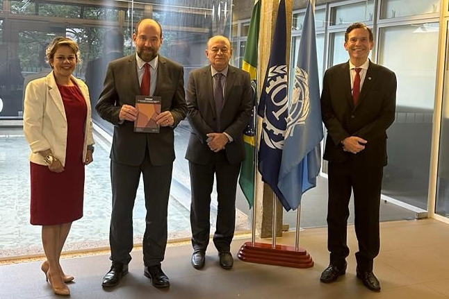 A equipe do Escritório da Organização Internacional do Trabalho (OIT) no Brasil, liderada pelo diretor Vinícius Pinheiro, recebeu, na quinta-feira (23/11), em Brasília, o ouvidor do Tribunal Regional do Trabalho da 7ª Região (TRT-7), desembargador José Antônio Parente, a procuradora do Trabalho do Ministério Público do Trabalho (MPT) na Bahia Séfora Cerqueira e o desembargador do Tribunal Regional do Trabalho da 4ª Região (TRT-4) Clóvis Fernando Schuch Santos.