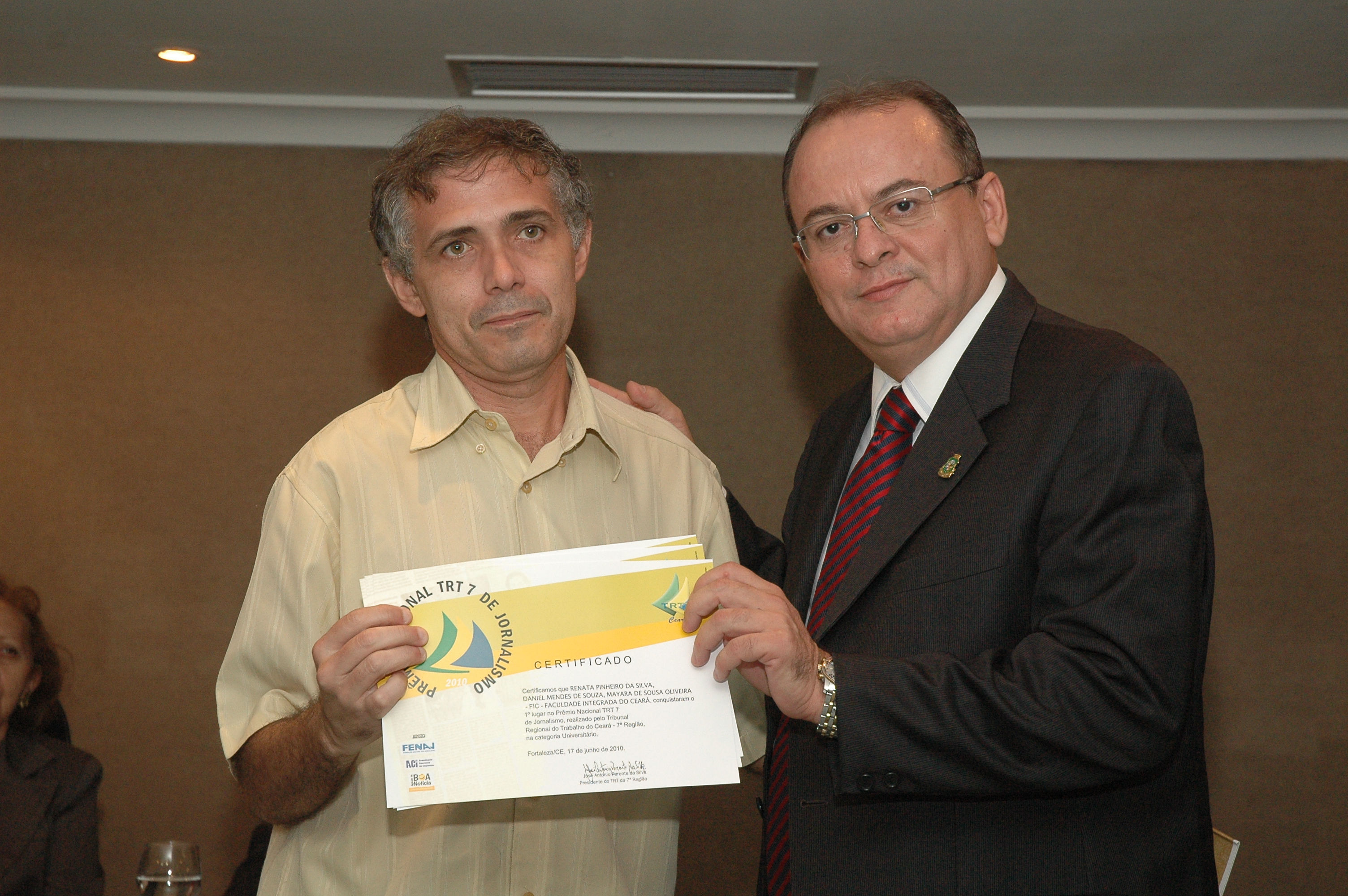 O presidente do Tribunal Regional do Trabalho do Ceará - 7ª Região, desembargador José Antonio Parente da Silva, presidiu, na tarde desta quinta-feira, dia 17 de junho, a solenidade de entrega do Prêmio Nacional TRT7 de Jornalismo 2010, uma iniciativa do TRT/CE com parceria institucional da FENAJ – Federação Nacional dos Jornalistas, da ACI – Associação Cearense de Imprensa e a da Agência da Boa Notícia.